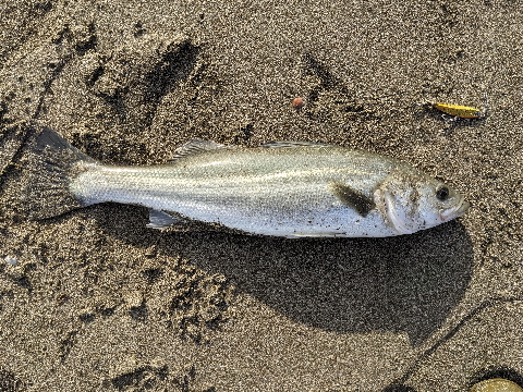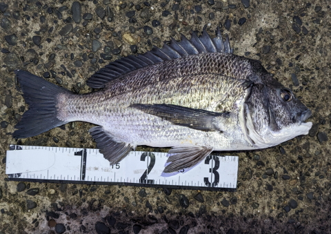 足場が高かったので尺アジ対策にタモを持っていたから捕れた一匹でした。