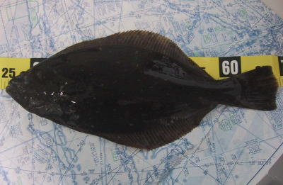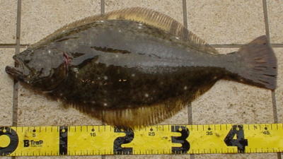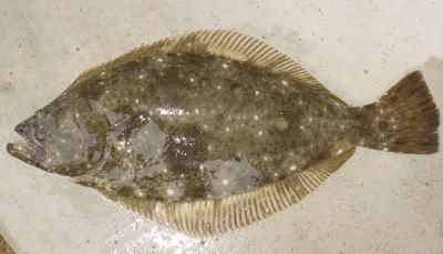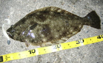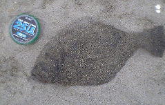 | 小さいですが、今年の初ヒラメなので送信します。 | 向かい風で、ミノー届かず、またしてもワームです。 しかし反応良く、この後良型バラシ2、ソゲ1枚、アタリ多数でした。朝、時間なくて写真とれなかったです。ごめんなさい。 |