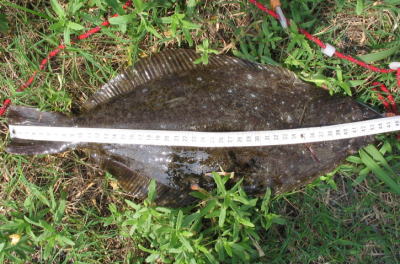 | ここ数日、オメーが帰ると釣れるからそれまで休憩だ!と、地元のオヤジに言われる始末。やっと釣れました。ソゲ&マゴチハンターは返上してペースアップといきたいです。 | はじめまして。生涯初ヒラメです。6月14日にシーバスを釣ったのを最後にボウズ続きで13連敗中でした。連敗ストップです。それからひらめっぱりHPには大変お世話になりました。今日の釣果はひらめっぱりのおかげです。ありがとうございました。 | |||