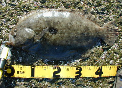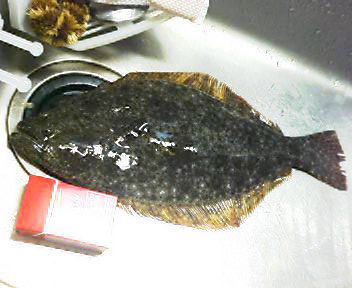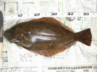| 変な顔のヒラメ 最大級のガンゾウビラメです。ガンゾウでは、座布団に匹敵します。by おに |