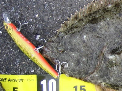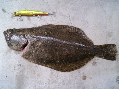 | 朝,第一投でヒットしました. | 鹿児島までヒラメ前線が南下してきたよー! | |||