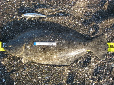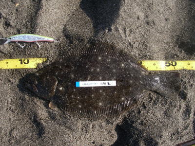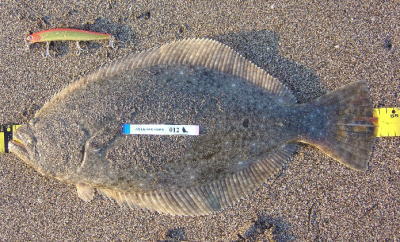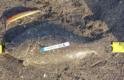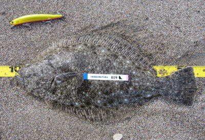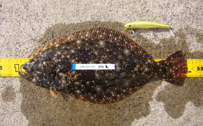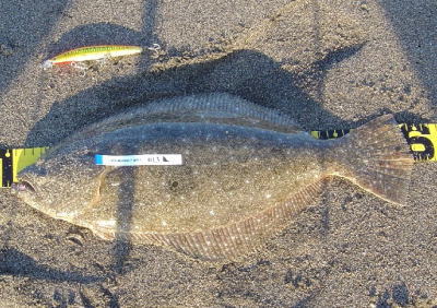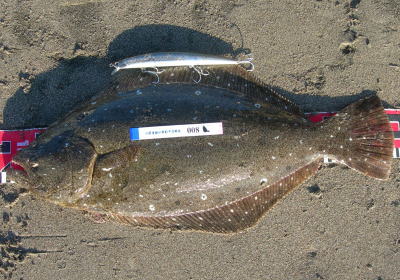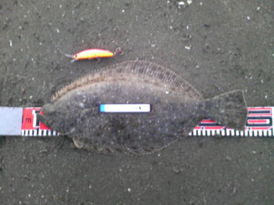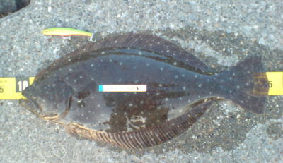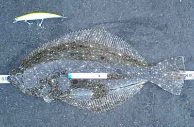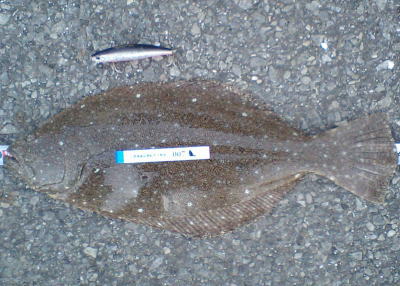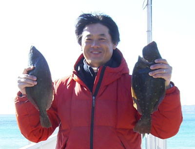 | 2枚とも ひらめっぱりオリジナルのひらめっ波で釣ってくれたナオハルさん。素晴しい〜ゾ by おに | ||||