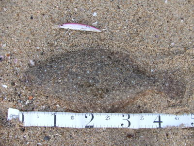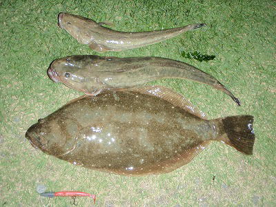 | かろうじて取れたこのサイズ | マゴチの当たり連発のあとの一枚 | |||