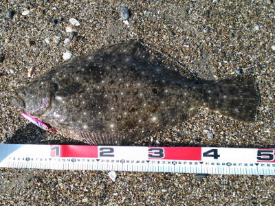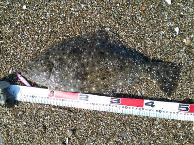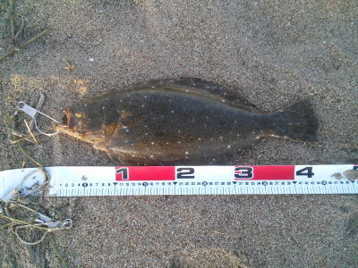 | 家族で海水浴中に素敵なヨレを発見し、我慢できずに1時間くだけ勝負したら、49と36の2枚に3バラシ。 | 自己記録更新! | |||