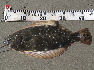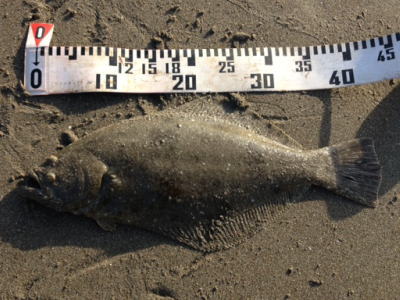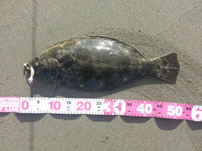 | 波が高い時は泳ぐ力のあるサイズが出ますね。 | 久しぶりのヒラメ(≧∀≦) | |||
