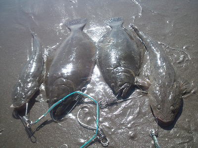 | 当日は58CMを頭に48CMまでのサイズを4枚ゲット。後期高齢者のG.G師には過酷な釣りでした。 | この後ひらめっぱ殉職(T_T) | |||
