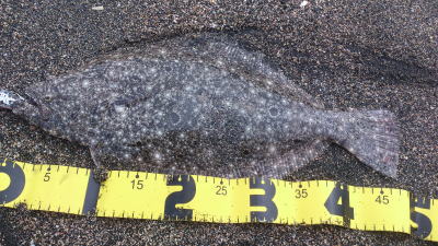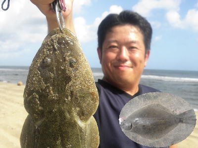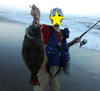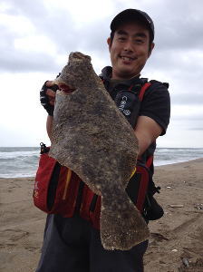 | 同じ離岸流で4バイト、2ヒット、1バラし!2日前に初ヒラメ(ソゲ)ゲットしましたが、ようやく念願のヒラメです!バラしたのはソゲで良かったw | 長い連敗明けでビックサイズゲット^^ | |||