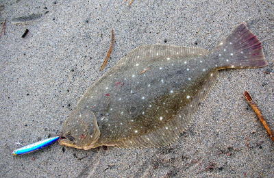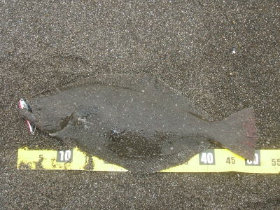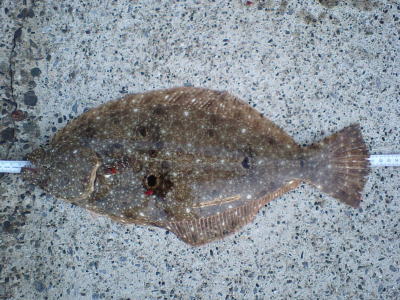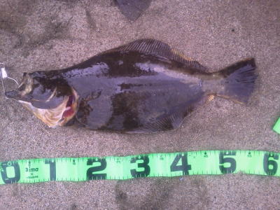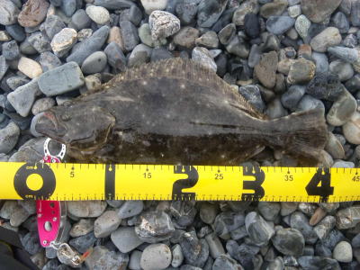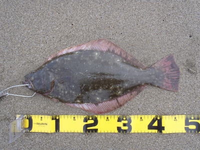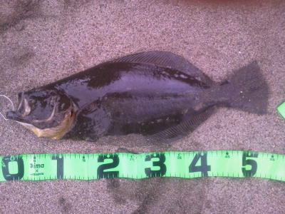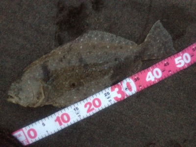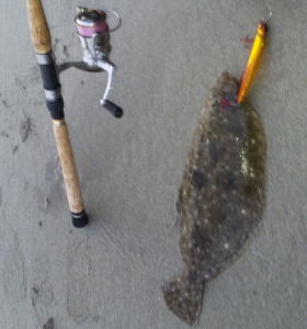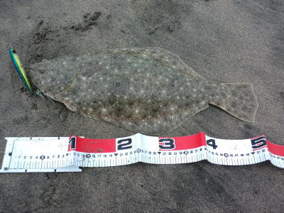 | 朝の2時間勝負でゲット! | 今年一枚目のヒラメサイズ。 | |||