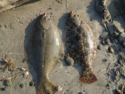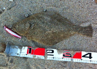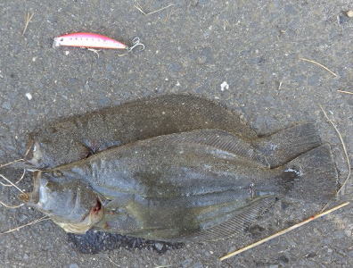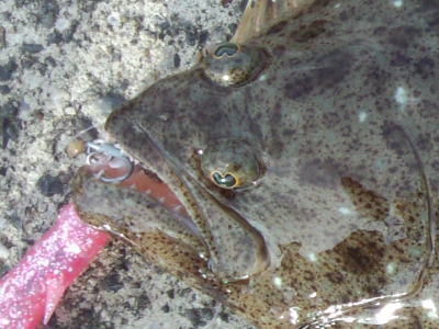 | 下げ潮でくった | この日はゴミが多くて、またゴミかと思ったら……ヒラメでした! | |||