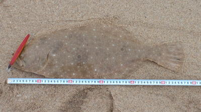 | 初ヒラメです! | 1ヶ月ぶりのヒラメサイズ | |||