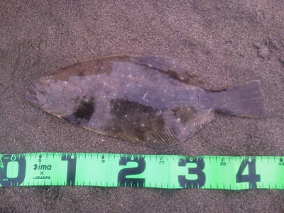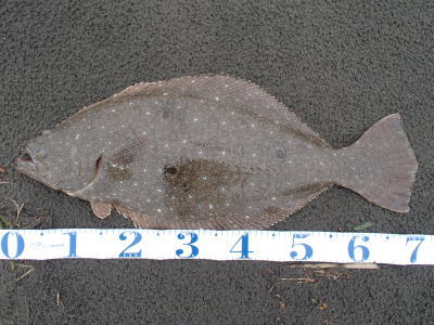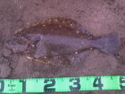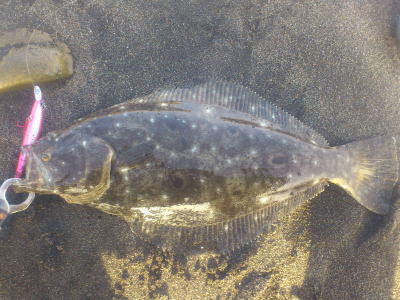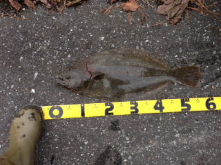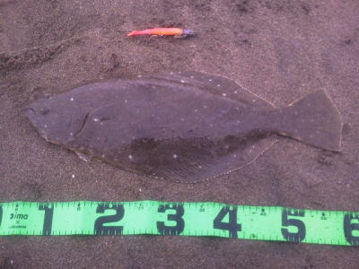 | 寒い中、なんとか一枚でました。 | 初ヒラメでした。 | |||