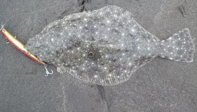 | ヒラメを求めて3年… やっと投稿できるサイズが釣れました! | 開始早々の一投目で来ましたのでビックリしました。 | |||