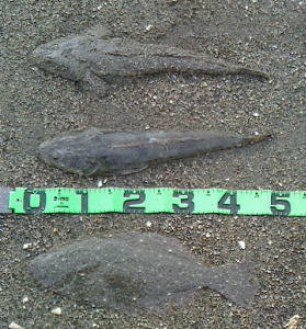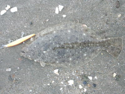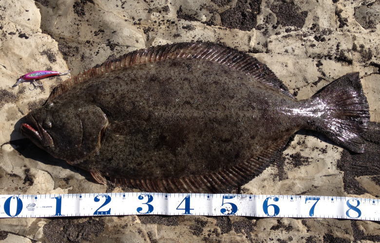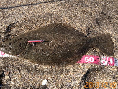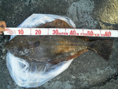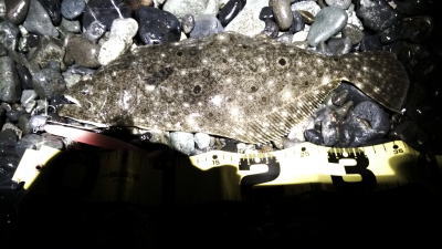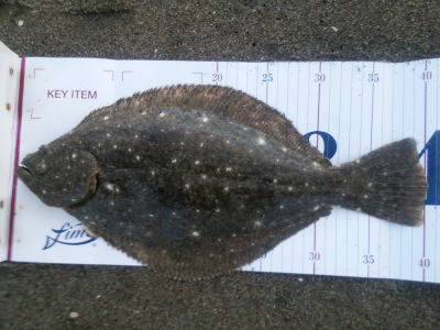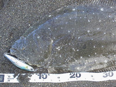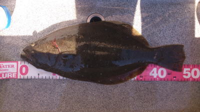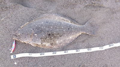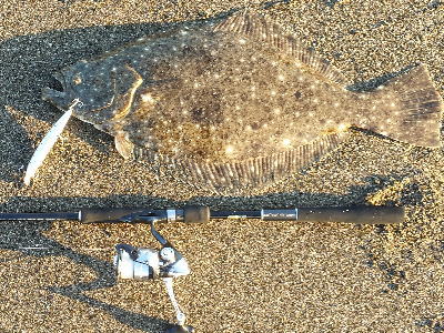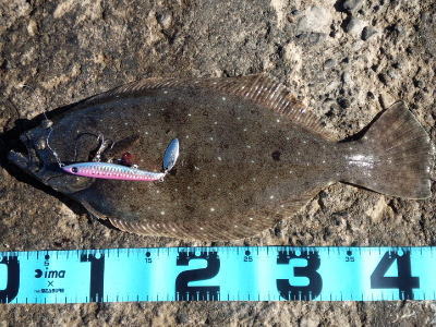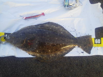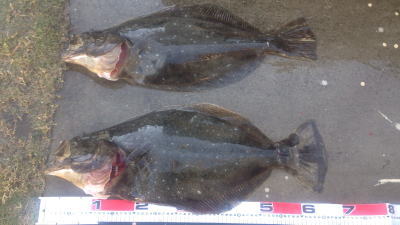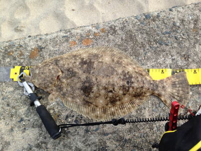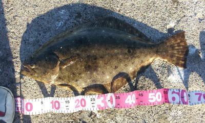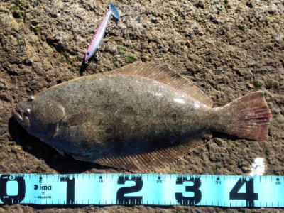 | 久しぶりのひらめサイズ | 満潮前後にアタリが出始め、マゴチ40〜59も4匹釣れました。 | |||