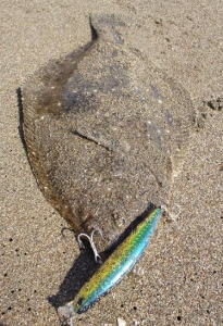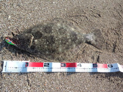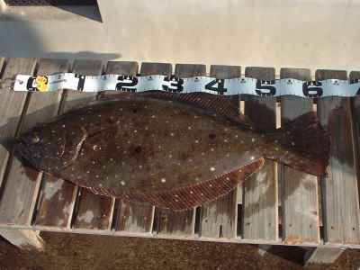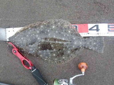 | 今年初ヒラメ | エイがいっぱいで、困り果てた中での一枚ですた! | |||