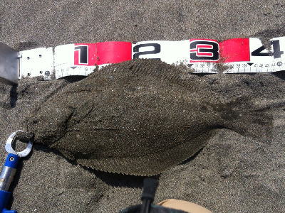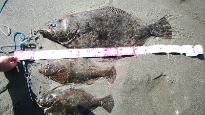 | ソゲと合わせて2枚。サーフ最高! | 今月ソゲも含めて13枚目。ヒラメサイズだけでは、5枚ですが.... | |||