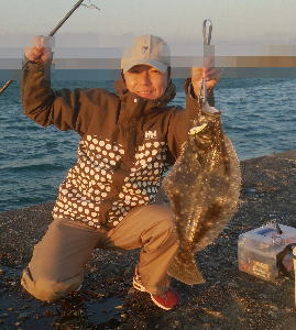 | 朝マズメに間に合いませんでしたがなんとか捕れました! | 初投稿。ヒラメ歴2か月の初心者です。外海が荒れてる時の港内で釣りました。 | |||