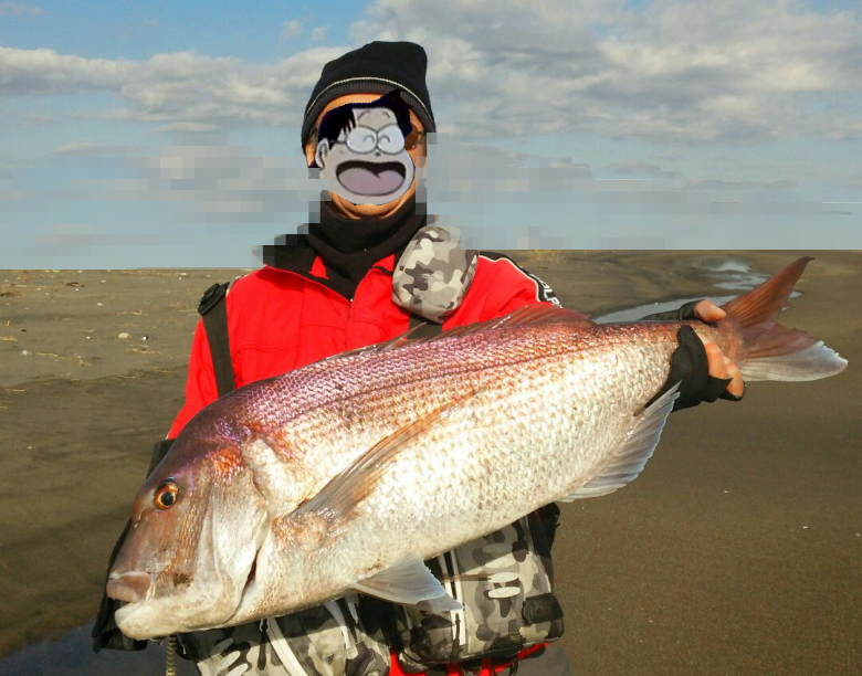 | これが南房サーフで話題のレッドです。 87cm / 7.8kg / PE0.8号 レバーブレーキのリールだったがゆえにこのラインでも捕れました。 |