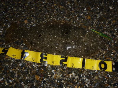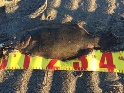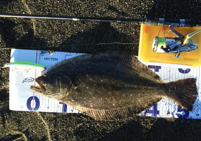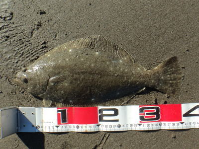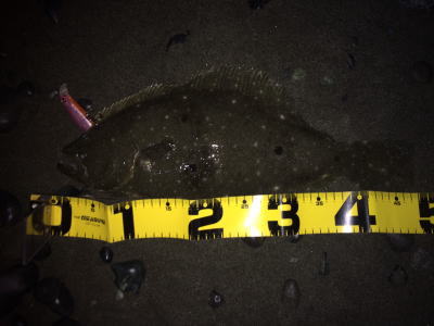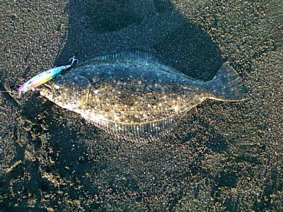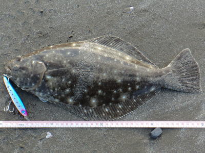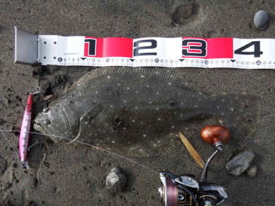 | ライズヒラメ釣ったぞ | 波打際近くなったのでルアー回収しようとした瞬間!目の覚めるようなアタリでびっくりしました。 南西微風 ただ巻 南に流れる潮が若干早かった。 | |||