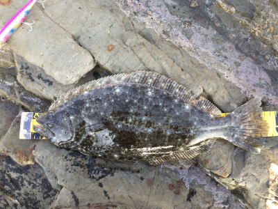 | ちょうど射程距離に横潮流が入ったので投げて直ぐフォールで釣れました。 2枚目も同じ感じで釣れました。 |