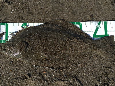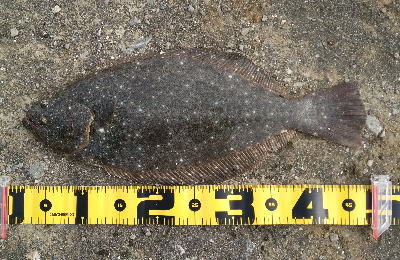 | 暖冬だからでしょうか、このシーズンはもう少し期待できそうです。 | 房総ヒラメ頂きました〜。お腹の中からは○○○○が! | |||