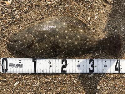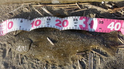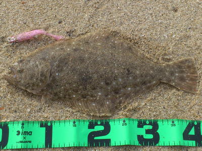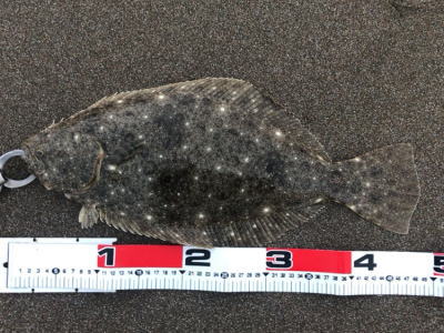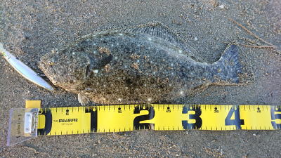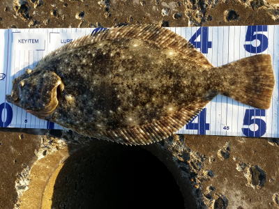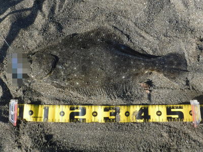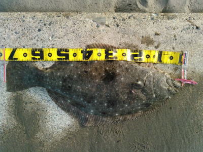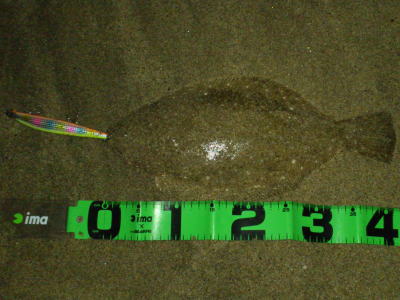 | 今年40枚目です。 | 12週連続釣行、初ヒラメ嬉しいっす。小さいベイトが跳ねた直後でした。 | |||