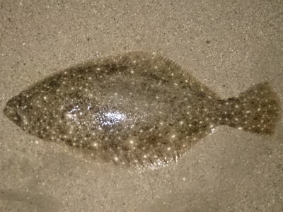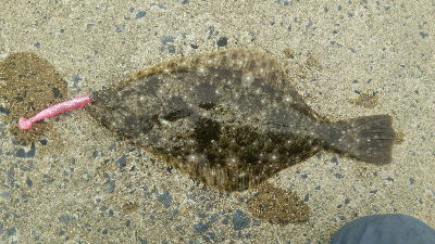 | ランガンする事3時間、ヤット釣れました。 | 前のヒラメでヒントを得て釣る事が出来ました。 | |||