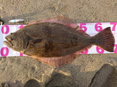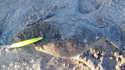 | かっとび棒を波打際まで追いかけて来てジャンプが見えたのでいろいろルアーを試しましたが、ぶっとび君で波打際手前にストンと落としたら来ました(*´∀`*) | koumeでただ巻き堤防横の流れが良かった。 | |||