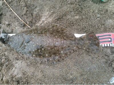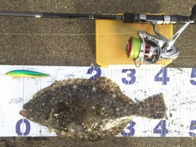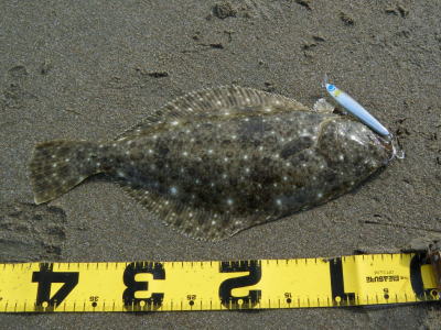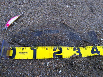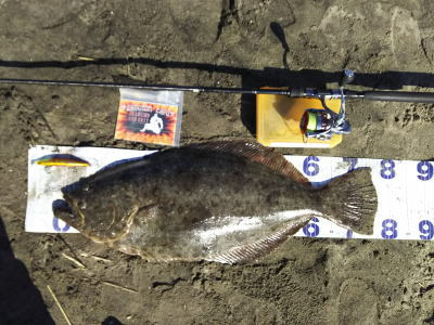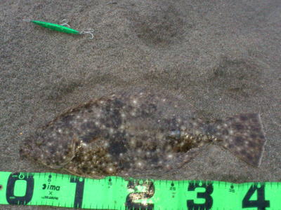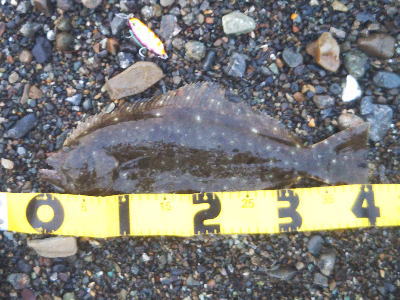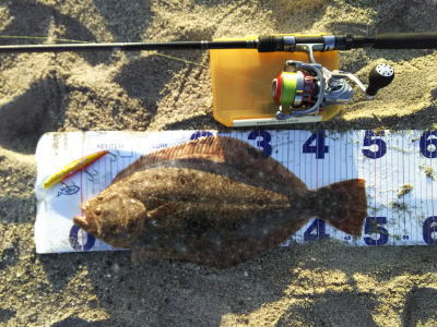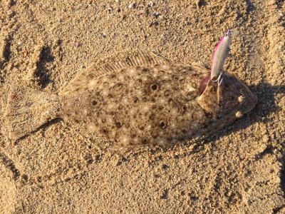 | 開始3投目、波打際のカケ上がりでした。 | 三鮃三平と久々の平日釣行♪(^^;♪釣ったゾ!! みんな型が小さいみたい? |