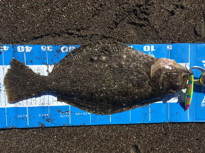 | 釣ったぞ!初投稿から11年目にしてようやく私も座布団を投稿することができました。感動と達成感でフックを外す手が震えました。 | 今年初ヒラメ(*´∀`)♪ | |||