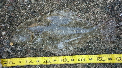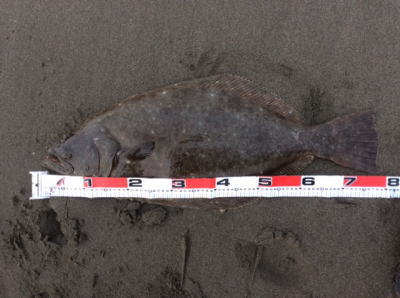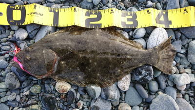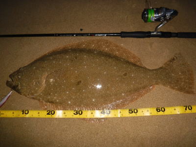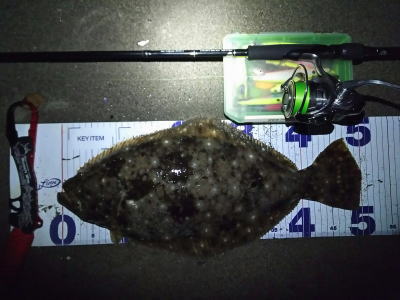 | 釣り仲間か先に釣り上げて自分も釣りたいなぁーと思ってたら釣れちゃいました!! | なかなか釣りに行けず久しぶりヒラメのファイトは楽しかったです。 | |||