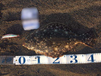 | お昼近く!たぶんイワシ?かと思われる群れが沖目にさしている感じの中での1匹でした! | 満潮からの巻き返しすぐでした。40M位沖でサッパが突き上げられるボイルがあり周辺に投げたら波打ち際でヒット。テールフックでしたので少し沖から追尾してきたみたいです。 | |||