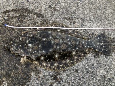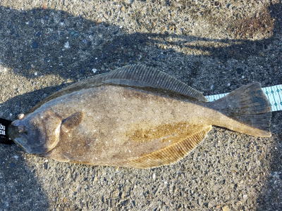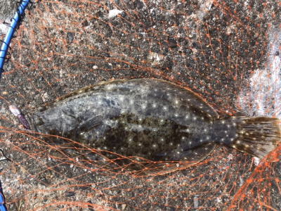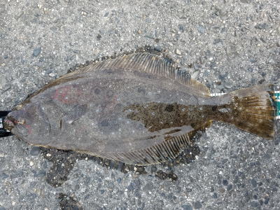 | やっと今年初ヒラメ釣れました。 | 久々のヒラメ、昨年と同じ場所で、よく似た体型のヒラメでした。 | |||