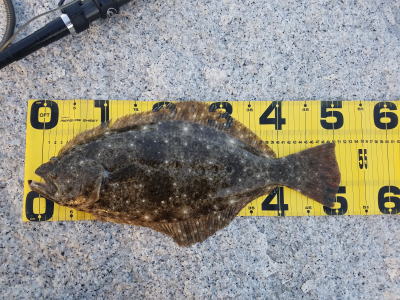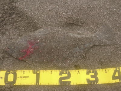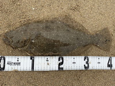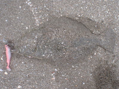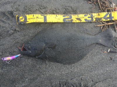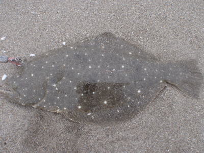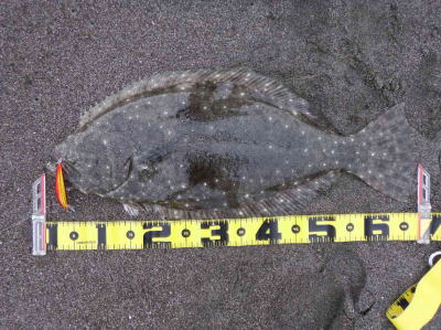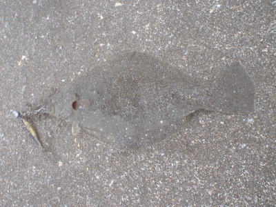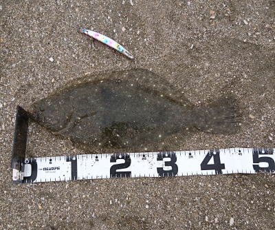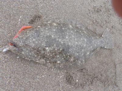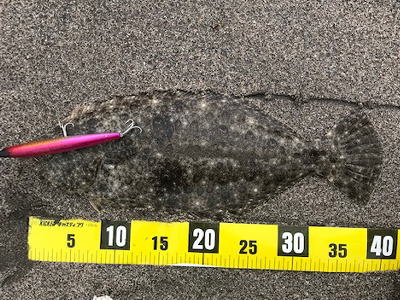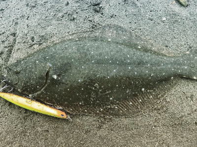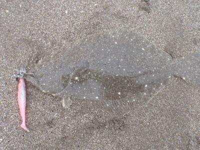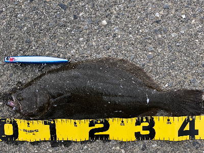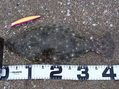 | 今シーズン初ヒラメです、他にソゲ2尾、スズキ1尾が釣れ楽しい釣行でした。 | やっと釣れました。今年1枚目。 | |||