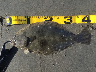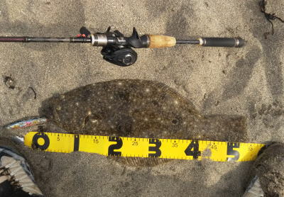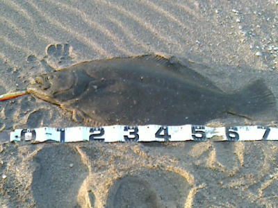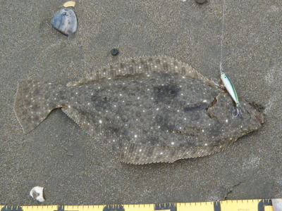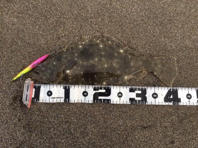 | 時合が良かったのか、10分後に3枚目のヒラメ 初めての千葉サーフでとても良い経験が出来ました。 | ---- | |||