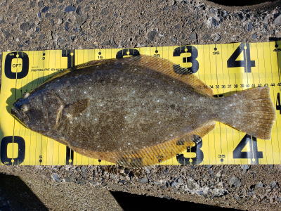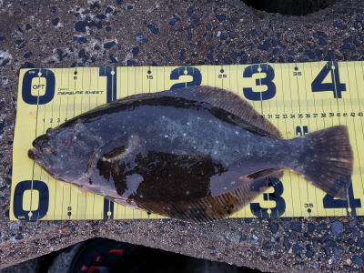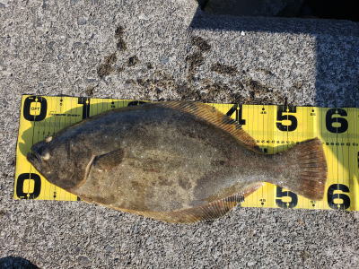 | 底を取ってから、ゆっくり引いたら食いました | この日は、二枚釣れた!丸呑みでした! | |||
