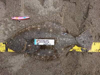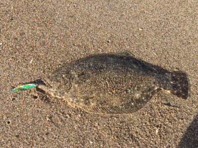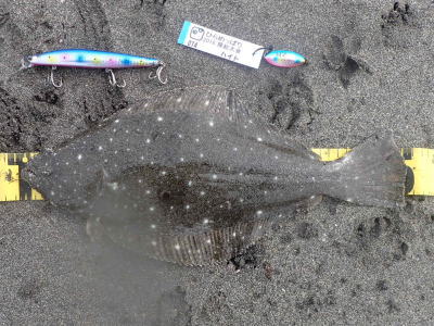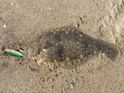 | --- | 磯混じりのサーフだったので、沈まないルアーをユックリ巻いたら出ました。 | |||