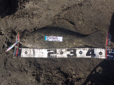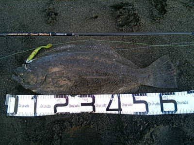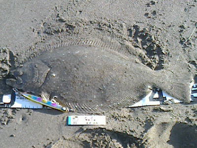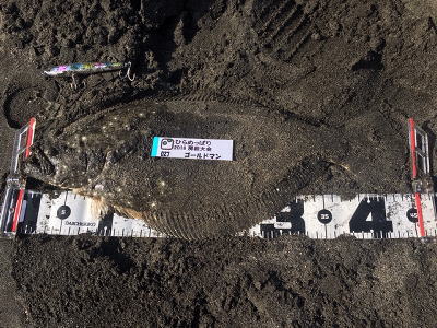 | --- | 日間かけて数qのサーフをランガンし、出るならここという払い出しに対して、色々な角度からキャストしてピンで狙って攻めると、狙い通りにでてきてくれました。 しっかりと曲がり込んでくれるロッド、喰わせてくれたルアー、揚がってくれた魚に感謝です!! |