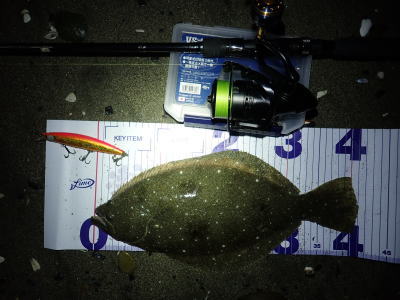 | 15分で3バイト2キャッチ。バラシた魚はデカかった… | 真っ昼間の潮止まり。ミノーのただ巻きできました! | |||
