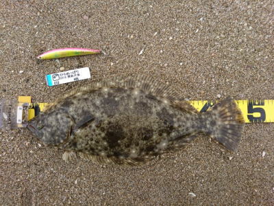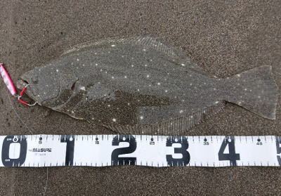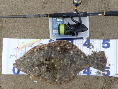 | --- | 流れに乗せて、水深30cm位の波打ち際でドリフトしていたら、ひったくるバイトに上手く対応できました。 | |||