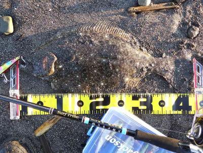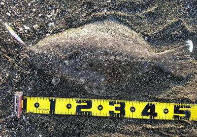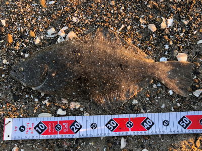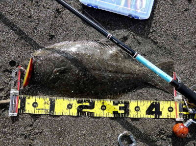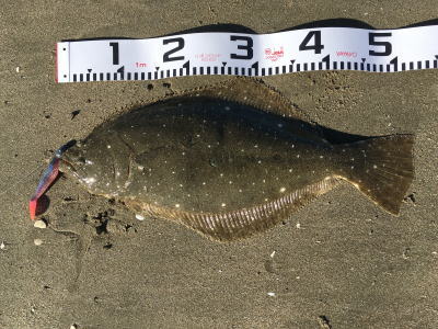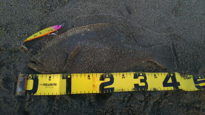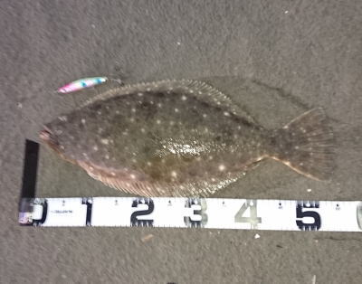 | ラッキーでした! | 暗い中エントリーし地形悪くやらかした感じでしたが わずかに流れのあるポイントでドリフト気味に誘いヒット。久しぶりのヒラメにホッとしました。 | |||