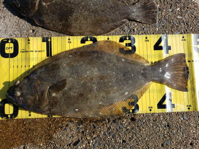 | 病み上がり一年ぶりのヒラメ凄く嬉しかった。やったー! | 一人粘っていたらもう一枚釣れてくれました。 | |||