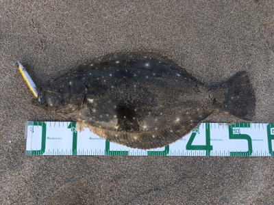 | マゴチ狙いでしたが… | 先週は茨城で釣れたので、今週は千葉に行きました。他の人が避ける沈み根周辺を丁寧に攻めるとガツンときました。 | |||
