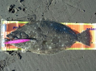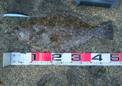 | 波口にはベイトがおり、近場の深みを丁寧に探りヒットしました。この他にもマゴチ・イナダと良き初釣りになりました。 | 初釣りで幸先良く釣れてくれました。横潮流のファーストブレイクでのヒットです。 | |||