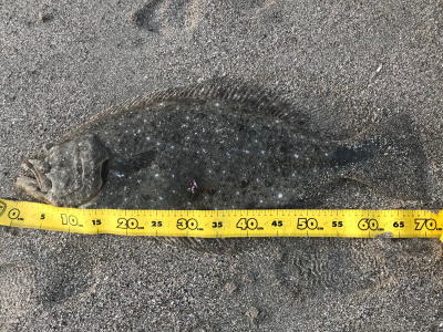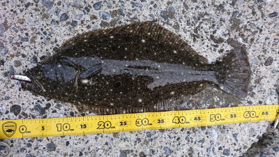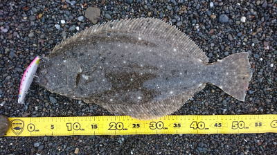| イナッコが沢山いました。水温18.4度。一日やって他にはバラシ1回と、かなり渋かったです。 | ベイトが見えずに釣れる気しませんでしたが、波打ち際でガツンとヒット!始めのダッシュを新しく購入したネッサリミテッドがいなしてくれて危なげなくキャッチできました。死の海と化した湾奥で久々のグッドサイズでしたので投稿させていただきます。 | |||