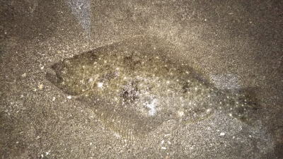 | ナイトサーフでワーム光らせてずる引きしてたら釣れました。 その後メーター太刀魚もヒット。 |