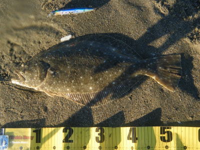 | 2ヶ月ぶりのサーフ!アジのリベンジはサーフで返す! | 離岸流出口の浅場をゆっくり流すとドンっ!スズキと間違えそうになったが新記録となって(*´∀`*)。 | |||