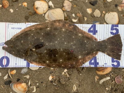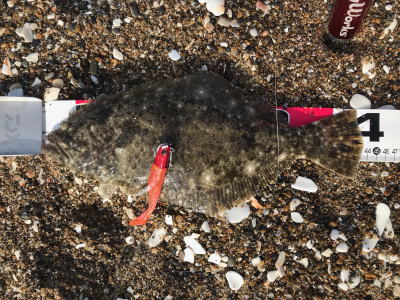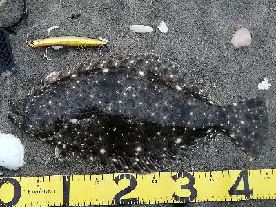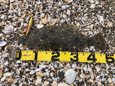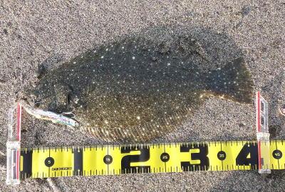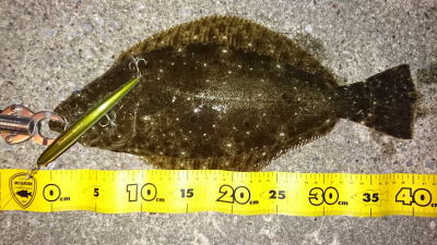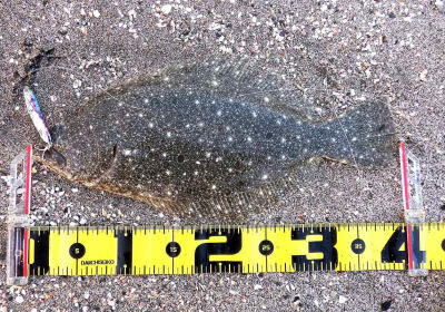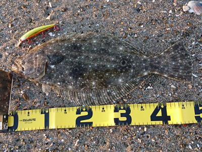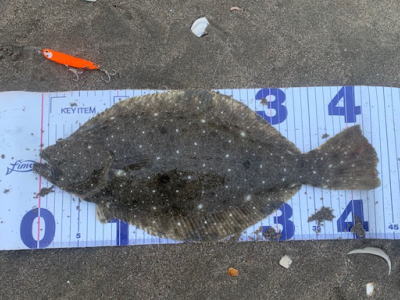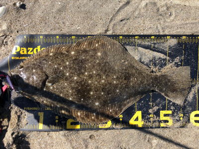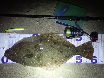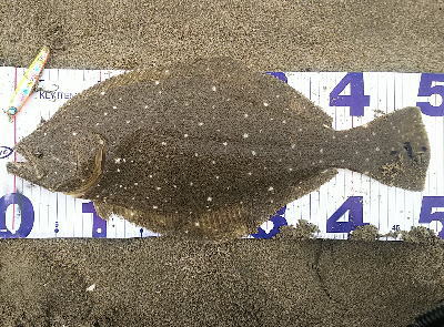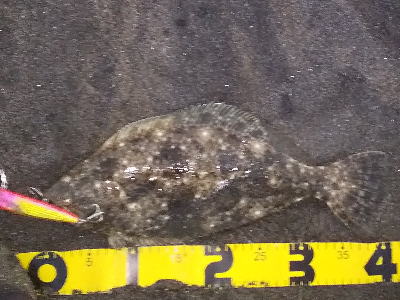 | 今年初のヒラメです。 | 終了4分前に釣れました。 | |||