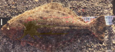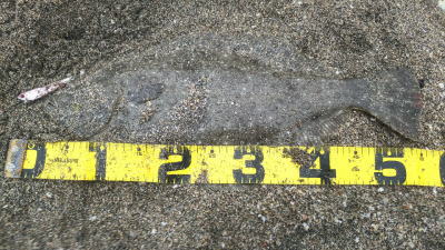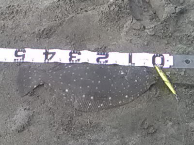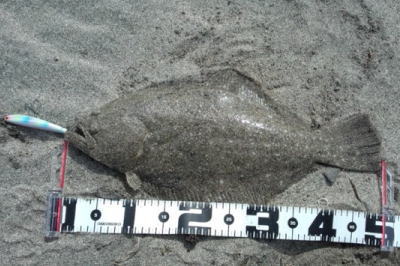 | 3年ぶりにヒラメサイズがつれました!今年も頑張ります。 | 海面下30cm程のレンジで食べたと思われます。 | |||