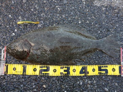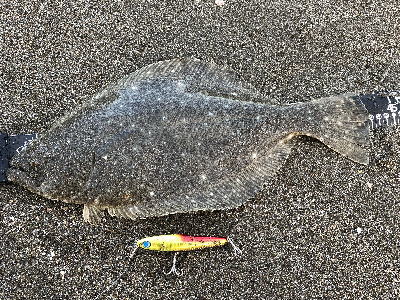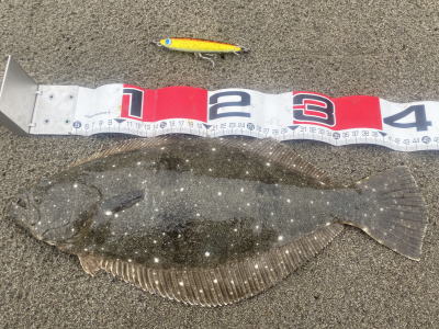| --- | また自己新記録となりました。一度バレたヒラメがルアーをチェンジして手前で食ってくれました。 | |||