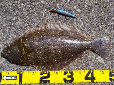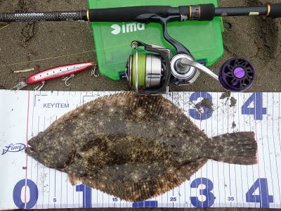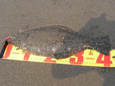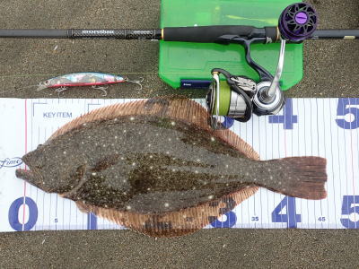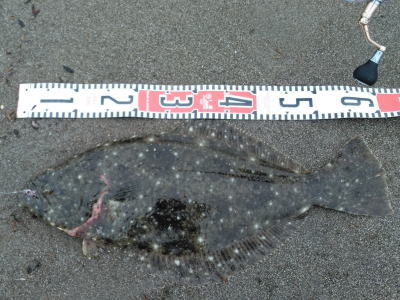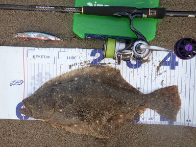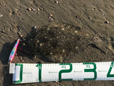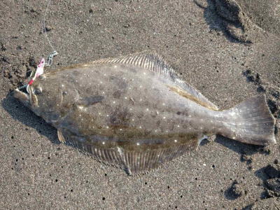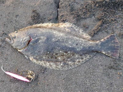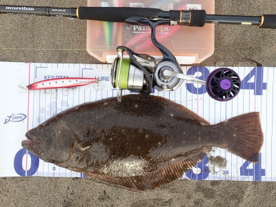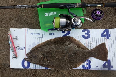 | 速い離岸流が出ていたのでその周辺を探ったらヒットしました | 少し気分が晴れました。ボトムを意識して、ゆっくりただ巻きでヒット。 | |||